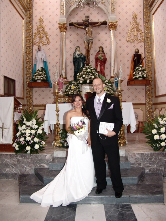 Dulce and I after getting married at the Church of Nuestro Señor del Calvario in Coatepec, Veracruz, Mexico in the summer of 2010