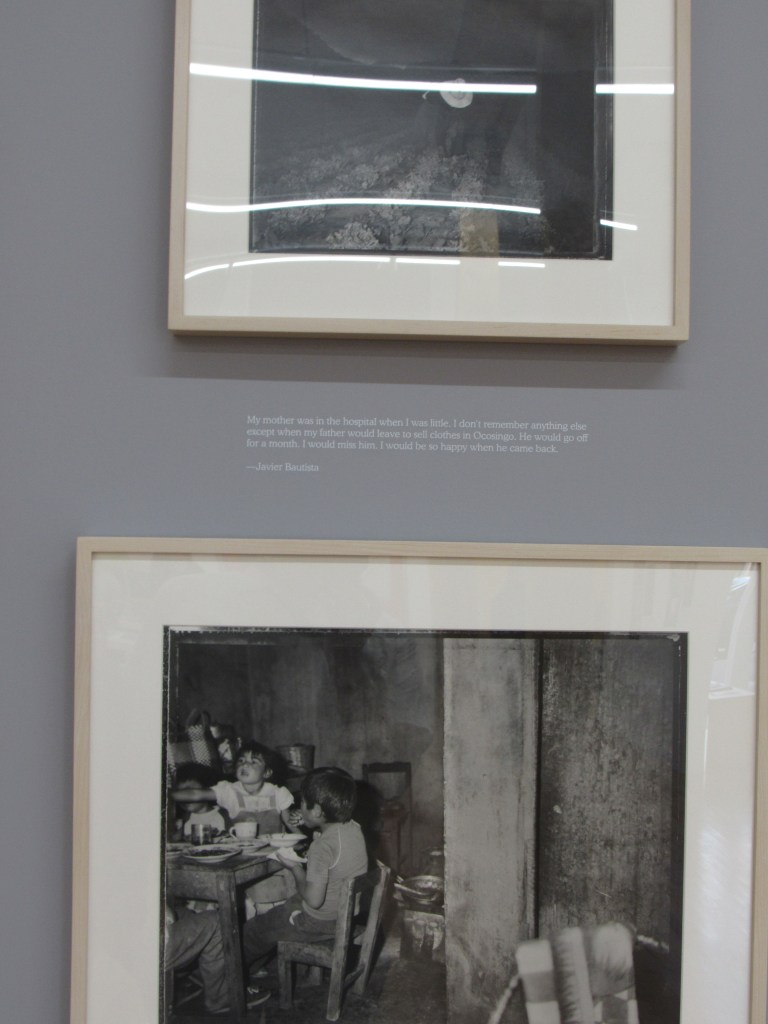 On the other side of the first gallery is a very different collection of photographs created by students who attended workshops in photography with Ewald. “The Devil is Leaving His Cave” is the title of this series of black and white photographs taken by Mexican and Mayan villagers from Chiapas. The very colorful photographs of “Daily Life…” create a stark contrast with these works, which are about thirty years old now, but the black, white, and grey tones create an impression that they could have been taken even decades before that. In fact, although they were taken at a very specific and relevant time, a year before the armed revolt of the Zapatistas, the photos feel timeless.