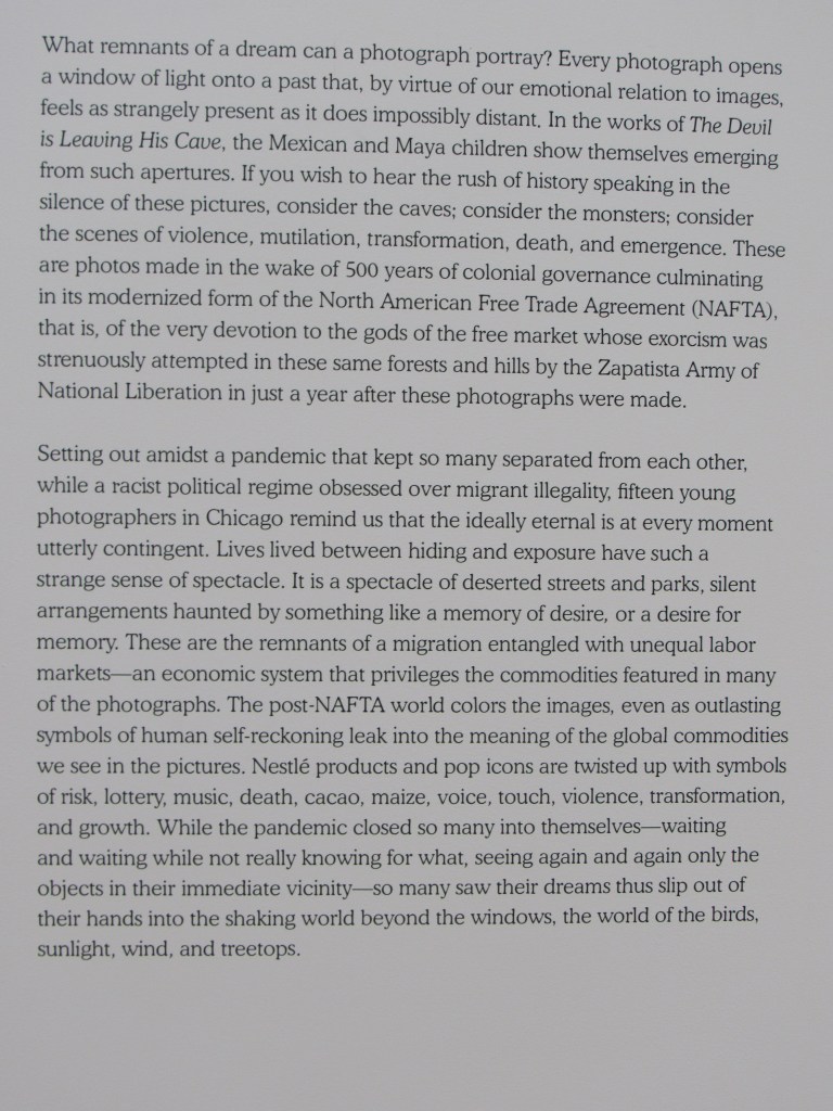 My ultimate takeaway from “The Devil is Leaving His Cave” is that I want to know more about these people and their lives. Its placement across the room from “Daily Life…” allows one to contemplate a dialogue between the two series. I, at least, am left wondering if the scenes portrayed in “The Devil is Leaving His Cave” might feel remotely familiar to the parents or grandparents of the adolescents from Centro Romero.