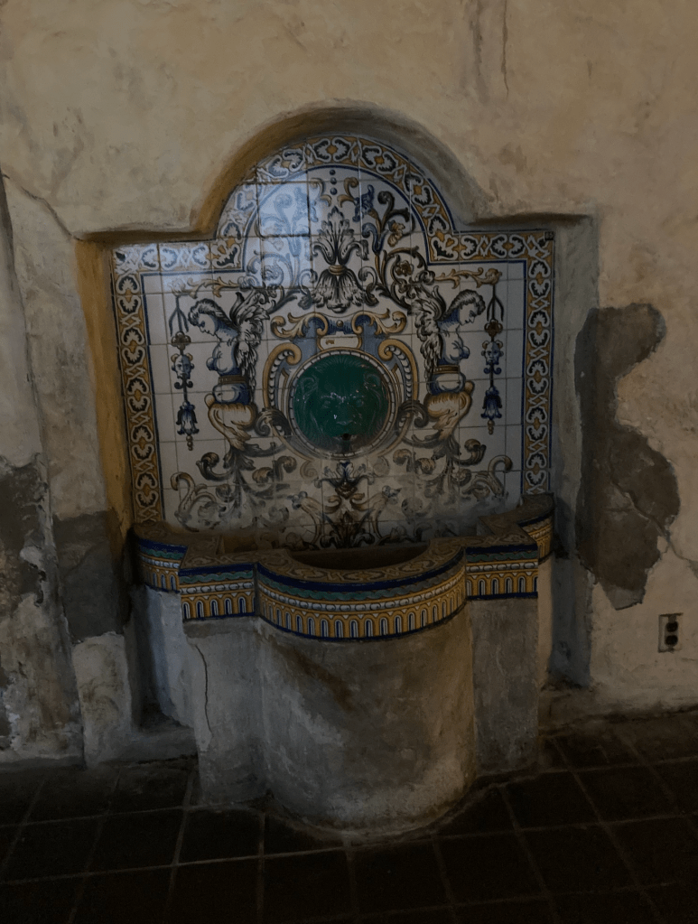 And the last part of the MPM that would be of interest to Hispanophiles is the casa española in the European Village, an exhibit on the first floor (next to the Streets of Old Milwaukee) that shows traditional European homes from times gone by. Pictures from the Spanish house are below. As you can imagine, they feature tiles that are typical in traditional Spanish constructions, religious imagery and statues, as well as a fountain and decorative ironwork on the windows and balcony.