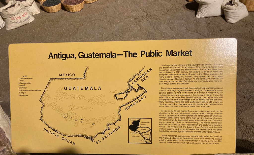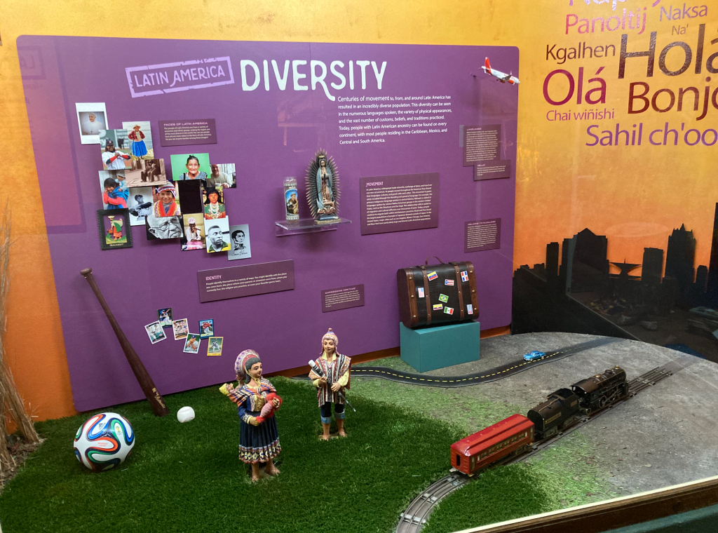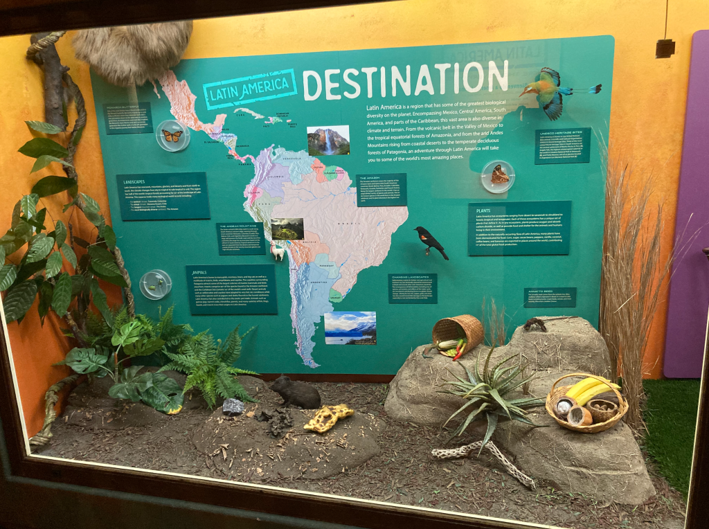There are two other areas of the MPM that are especially relevant to the study of the Spanish-speaking world. The first is the very large rainforest section on the first floor. The manmade rainforest here is modeled after Costa Rica, and it is immersive in virtually every possible way. All around you are the sounds of the rainforest and examples of creatures big and small that call the rainforest their home. A second floor allows you to visit the canopy and learn about its role in sustaining life. We even see a scientist’s lab located in the rainforest where samples are collected and analyzed. Some of the accompanying descriptions themselves in this exhibit are fading now, as the many visitors throughout the years have been opening and closing panels that reveal facts about the rainforest. Interestingly, the MPM founded a wildlife refuge in Costa Rica named Tirimbina, which now, unfortunately, is independently owned and operated. The focus here in this exhibit is on the important role the rainforest plays on the planet and the diversity of life it holds, so there isn’t a whole lot in terms of Costa Rican culture, but there are some nice details here and there that hint at it. I didn’t take photos of the rainforest exhibit on my latest trip, so I’ll simply share the video below from the MPM.